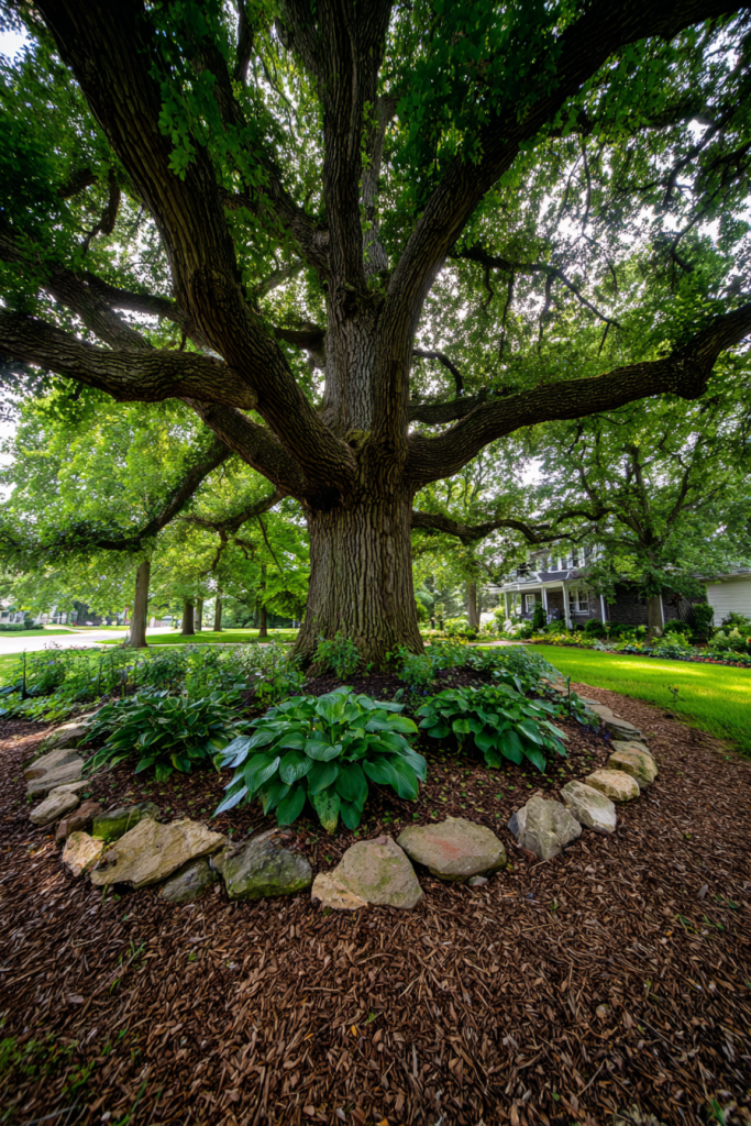 If you’re fortunate enough to have a mature tree in your front yard, make it the star of your landscape rather than fighting against it. I’ve seen homeowners build elaborate gardens around heritage trees, but sometimes simplicity works best. Create a generous mulch ring extending to the tree’s drip line this protects roots from lawn mower damage while reducing competition from grass. Edge the ring with natural stone or decorative metal edging for definition. Resist planting directly against the trunk, but you can add shade-loving plants like hostas, ferns, or impatiens around the outer mulch ring. Consider installing a circular bench around larger trees, creating a natural gathering spot. String outdoor lights through branches for magical evening ambiance.