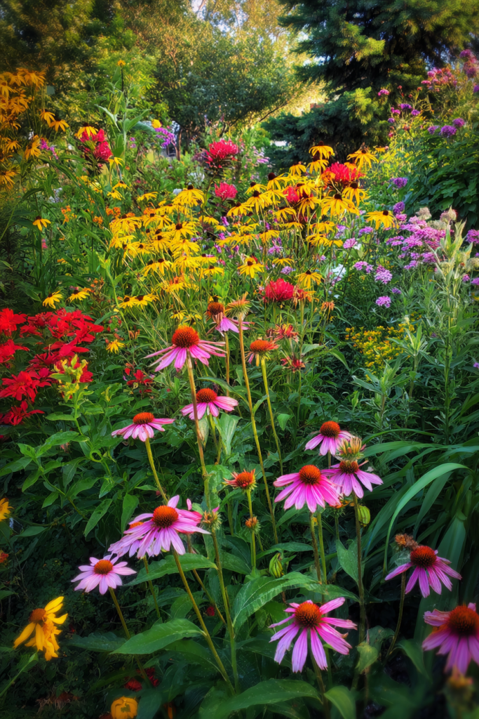 Creating a pollinator garden does more than beautify your yard it supports essential ecosystem health while providing constant motion and life. I planted native flowers three years ago and now enjoy watching bees, butterflies, and hummingbirds from my window daily. Focus on native plants that have evolved with local pollinators: coneflowers, black-eyed Susans, bee balm, and milkweed are excellent starting points. Include plants with different bloom times to provide nectar sources from early spring through fall. Plant in drifts of the same species rather than single plants pollinators find larger patches more easily. Avoid pesticides entirely, and leave some “messy” areas with hollow stems where native bees can nest. Add a shallow water source with stones for landing spots.
