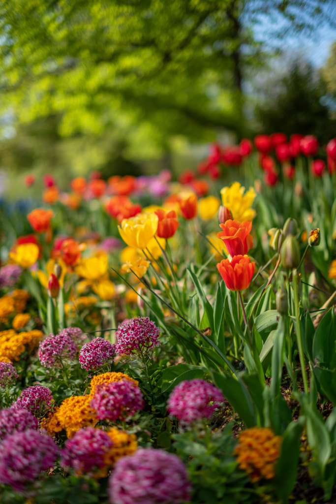 Maintaining vibrant color year-round requires planning seasonal rotations of annuals and bulbs. I keep a planting calendar and refresh my beds four times yearly now. Spring starts with tulips, daffodils, and pansies. Summer transitions to heat-lovers like petunias, zinnias, and marigolds. Fall brings mums, ornamental kale, and asters. Winter (in mild climates) can feature primulas, cyclamen, and flowering cabbage. Pre-plan color schemes so seasonal changes feel intentional rather than random. Keep a few containers aside where you can grow replacement plants before swapping them into main beds. This approach requires more work than perennial-only gardens but delivers constant peak performance. Deadhead spent flowers regularly and fertilize monthly during active growth for best results.