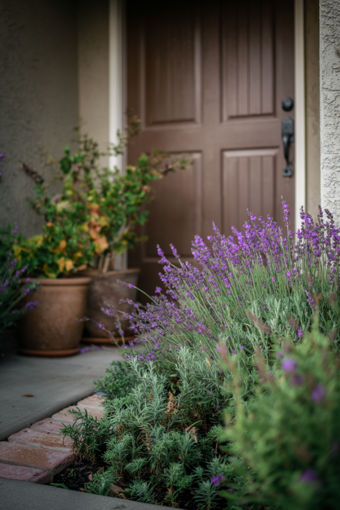 Positioning fragrant herbs near your front door provides practical kitchen access while creating a sensory welcome for visitors. I planted rosemary, lavender, and thyme along my entry path brushing against them releases incredible scents. Choose herbs that suit your cooking style and climate. Mediterranean herbs like rosemary, sage, oregano, and lavender thrive in hot, dry conditions. Mint varieties prefer more moisture but can be invasive contain them in pots. Design herb gardens in geometric patterns or informal cottage style depending on your home’s architecture. Include both culinary and ornamental varieties for function and beauty. Trim regularly to encourage bushier growth and prevent flowering in culinary herbs. Many herbs have beautiful foliage colors purple basil, golden sage, and silver thyme add visual interest beyond their scents.