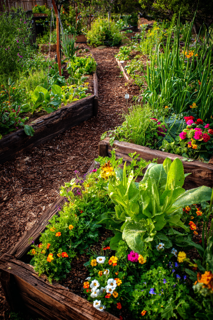 5. Raised Garden Beds with Mixed Plantings