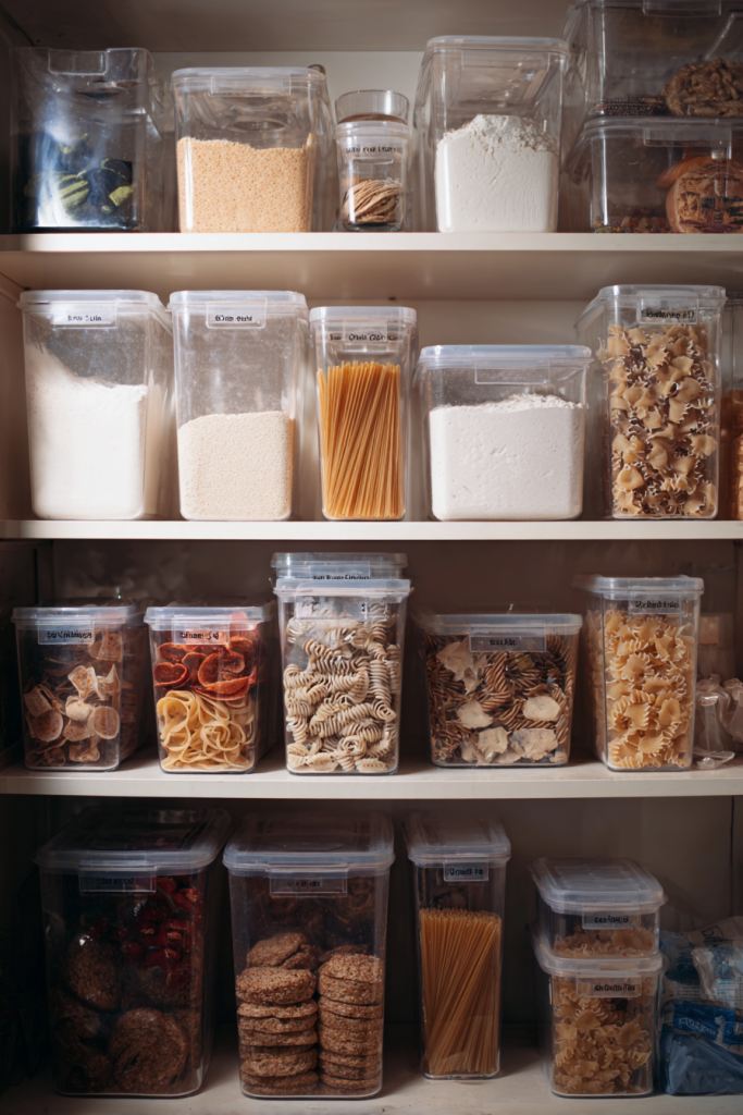 Choose clear containers so you can instantly see contents and quantities. Square or rectangular shapes use space more efficiently than round containers. Include various sizes to accommodate different items, from flour and sugar to snacks and pasta.